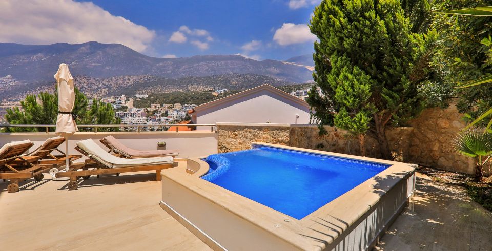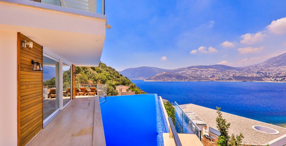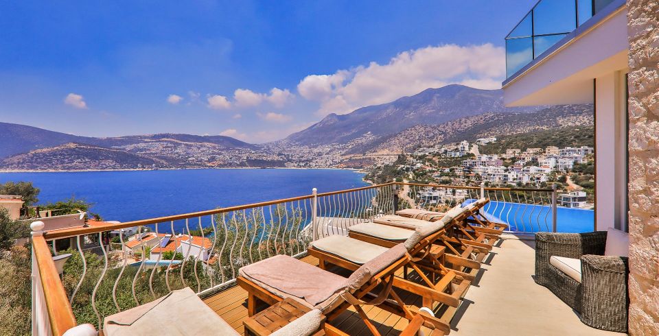 Villamız Kalkan'ın Kışla mevkisin de denize 400 metre mesafede olup eşsiz bir manzaraya sahiptir, havuz ve deniz birleşip sonsuzluk havuz görüntüsü ortaya çıkmaktadır. Villamızın her odasında deniz manzarası, balkonu ve banyo - WC bulunmaktadır. Geniş havuzu ve açık jakuzide tatilinize eğlenceli anlar katabilirsiniz. Villamız yakınında, restaurantı, plajı, marketi mevcut olup tatilde araç kullanmak istemeyenlerin için ideal bir seçim olacaktır villa tuna...Kalkanın doğal güzelliklerini, merkez yerleşimini ve sınırsız deniz manzarasını izleme şansına sahip olabilecektir. Terasından bakıldığında bu manzaraya özel yüzme havuzu ve bahçe peyzajı da eklenmektedir