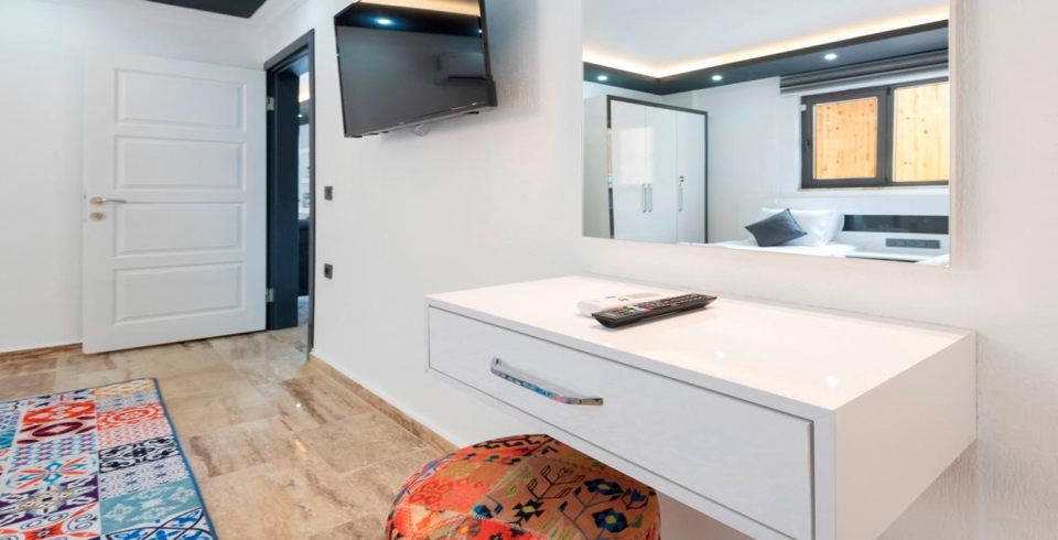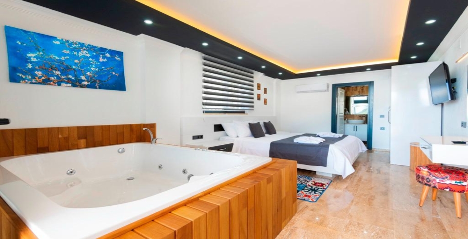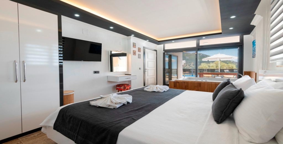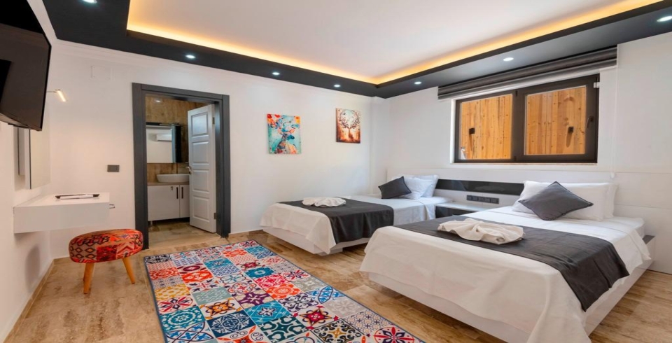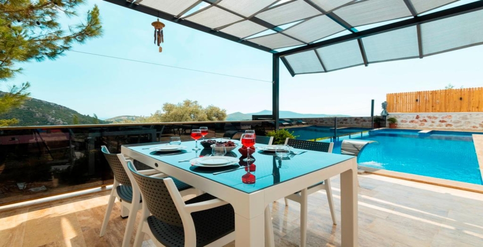 Villa Tuna Duo, Kalkan’ın İslamlar mevkiinde yer alan, 4 kişi kapasiteli, romantik bir villadır. 2 yatak odası ve 2 banyosuyla konforlu bir konaklama sunar; suit odasında jakuzili banyo yer alır. Villada özel havuz, sauna ve geniş havuz terası ile doğayla iç içe, huzurlu bir tatil deneyimi sizi bekliyor. Modern ve ferah bir mutfak ile tam donanımlı beyaz eşya (fırın, ocak, buzdolabı, mikrodalga) ve mutfak gereçleri konforlu kullanım sağlar. Oturma alanı, klima ve TV gibi imkanlarla donatılmıştır. Villa, üzüm bağları ve çam ormanları içerisinde, konumuyla dikkat çeker. Restoran, market ve kafe gibi günlük ihtiyaç noktalarına kısa mesafede yer alırken, plaja ulaşım da kolaydır. Doğa yürüyüşleri ve sessiz çevresi, tatilinize dinginlik katacaktır.