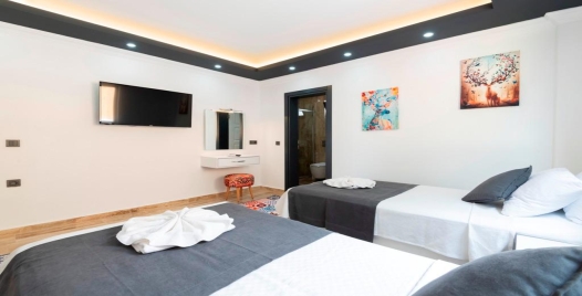 2.Yatak Odası: 2 adet tek kişilik yatak, elbise dolabı, komodin, klima, makyaj masası, banyo ve lavabo bulunmaktadır.