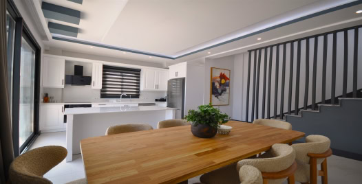 Salon: Oturma grubu, Uydu TV (LCD), Klima, 8 kişilik yemek masası, Havuz kenarına çıkış bulunmaktadır.