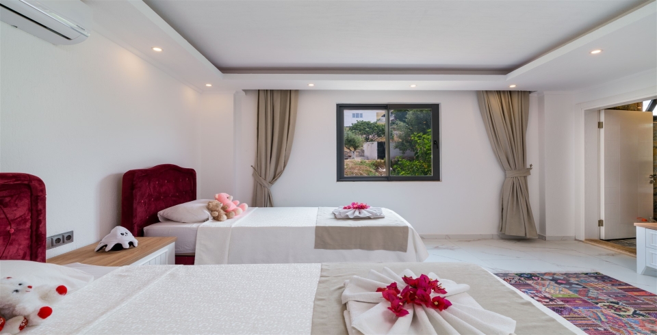 Villa Uğur Kalkan Akbel bölgesinde bulunan 2 yatak odalı 4 kişilik kapasiteye sahip muhafazakar özel havuzlu çekirdek aile villasıdır. Villamızın 1. yatak odasında keyifli vakitler geçirmeniz için 1 adet çift kişilik jakuzi bulunmaktadır. Villamız son derece kaliteli mobilyalarla dizayn edilmiş olup siz değerli müşterilerimizin rahatına önem verilmiştir. Villamızın bahçesi oldukça geniştir ve çocuklu ailelerimiz için oldukça uygundur. İçerisinde çocuklar için kaydırak, salıncak bulunmaktadır. Yalnızca çocukların değil ebeveynlerinin oynamaktan keyif alacağı masa tenisi ve langırt bulunmaktadır.