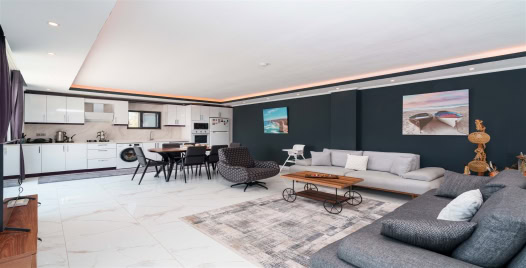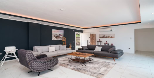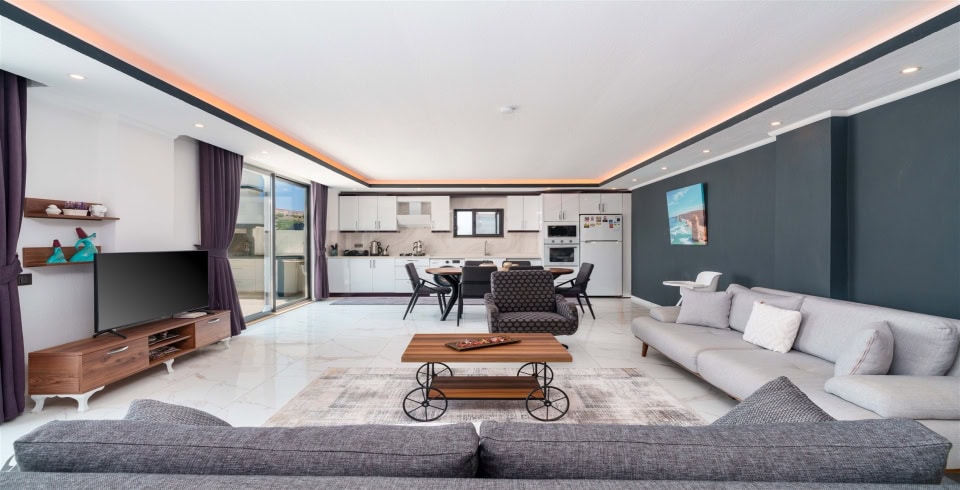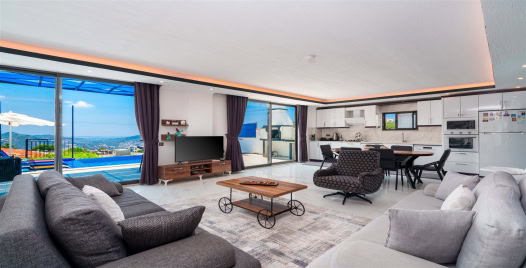 Salon: Villamızın salonunda konforlu oturma grubu, klima, TV, internet, uydu alıcı, yemek masası, sehpa bulunmaktadır.