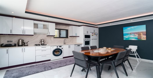 Mutfak: Villamızın mutfağında buzdolabı bulaşık makinası, çamaşır makinası, 4'lü ocak, ketıl, mikrodalga fırın, yemek takımı bulunmaktadır.