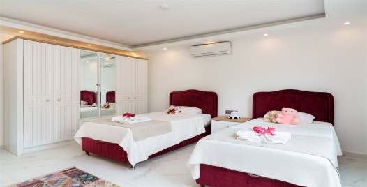 2. Yatak Odası: 2 adet tek kişilik yatak komodin, elbise dolabı, makyaj masası, banyo ve tuvalet bulunmaktadır.