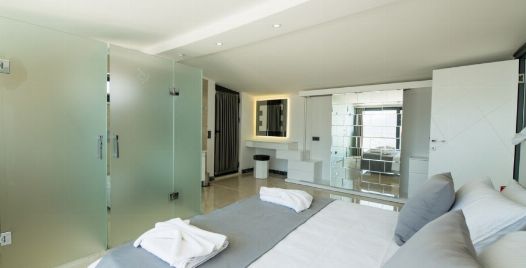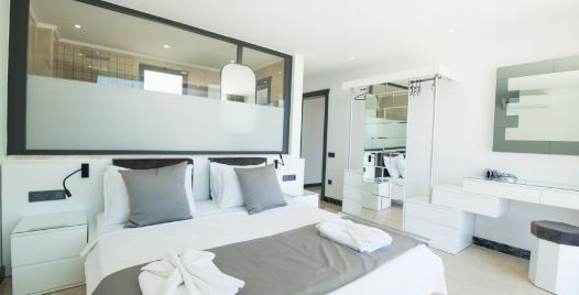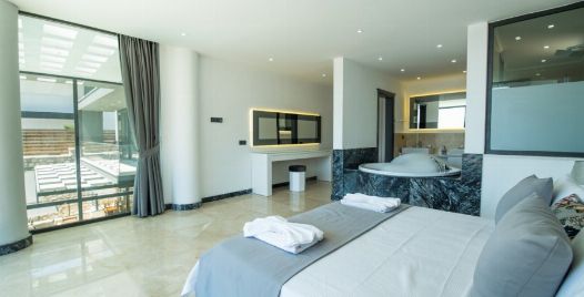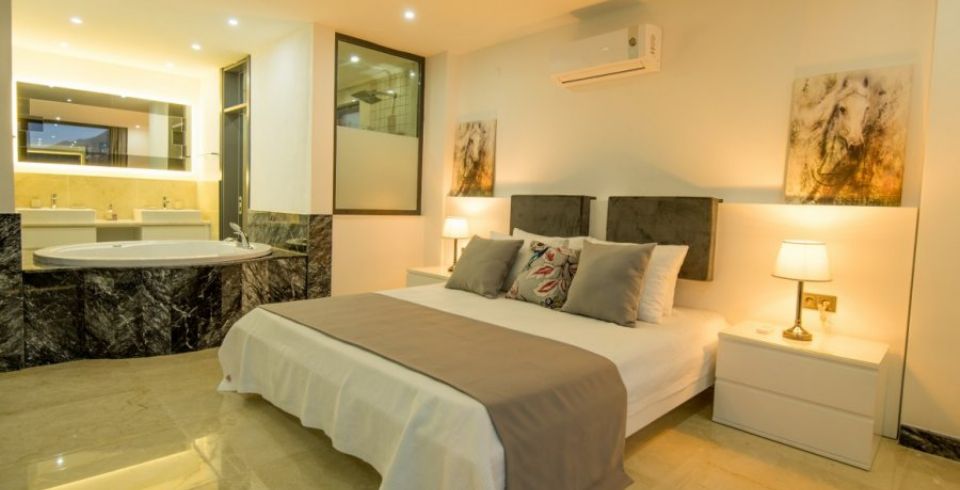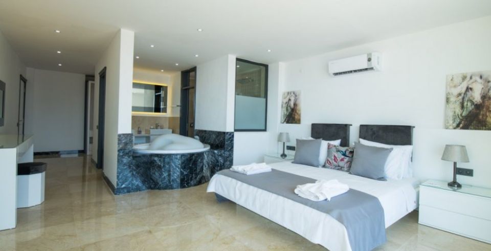 2. Yatak Odası : Süit oda çift kişilik yatak, klima, jakuzi, elbise dolabı, güvenlik kasası, komodin, makyaj masası, balkon, masa sandalye, banyo, tuvalet bulunmaktadır.