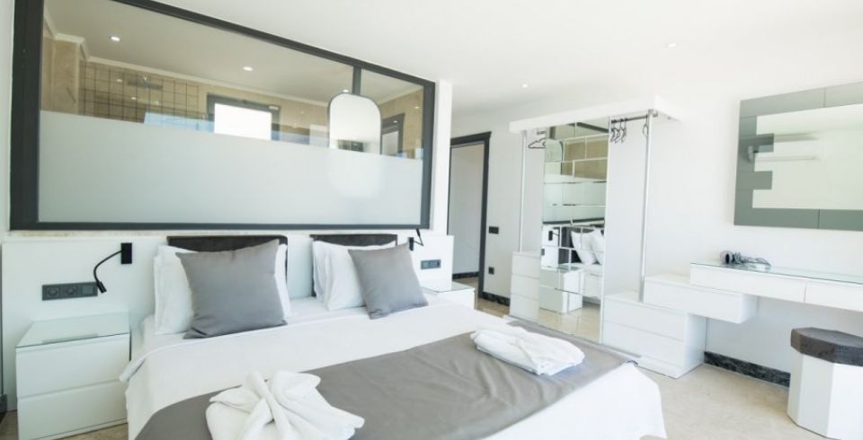 6. Yatak Odası : Süit oda çift kişilik yatak, komodin, klima, makyaj masası, elbise dolabı, banyo ve tuvalet bulunmaktadır.