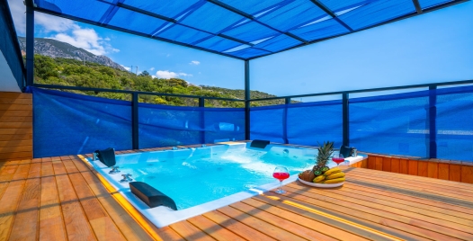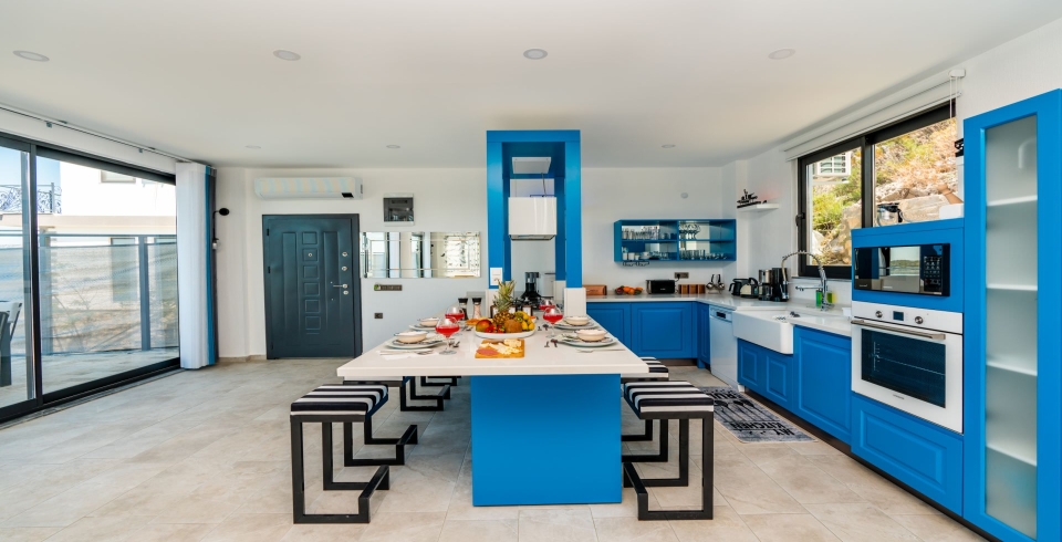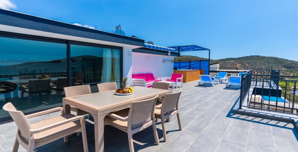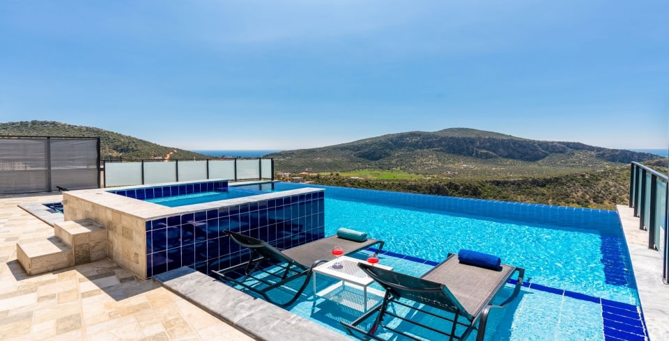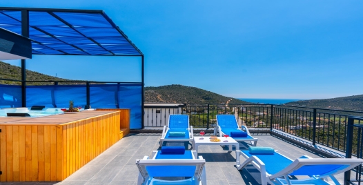 Villa Uranüs, Kalkan’ın Ulugöl bölgesinde doğa ve deniz manzarasını bir arada sunan özel bir tatil villasıdır. İki yatak odası ve iki banyosu ile toplam dört kişilik kapasiteye sahip olan villa, çekirdek aileler ve karışık arkadaş grupları için idealdir. Modern tasarımıyla öne çıkan iç mekânlarda açık mutfak, tam donanımlı beyaz eşyalar ve ferah bir oturma alanı yer almaktadır. Özel yüzme havuzu ve jakuzisi sayesinde misafirlerine konforlu bir tatil sunarken, havuz terasında güneşlenme alanı ve dinlenme köşeleri de bulunmaktadır.