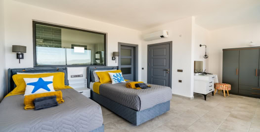 2.Yatak Odası: 2 adet çift kişilik yatak, elbise dolabı, komodin, klima, makyaj masası, banyo ve lavabo bulunmaktadır.
