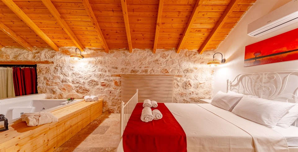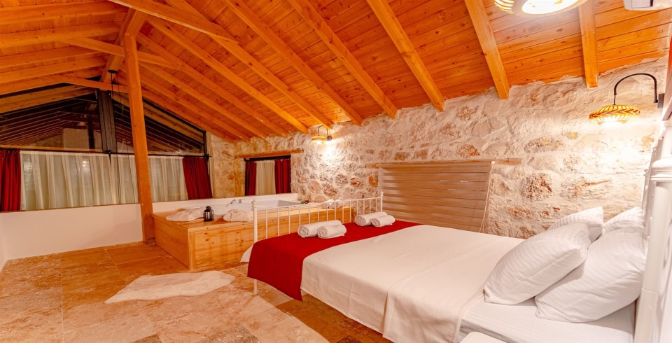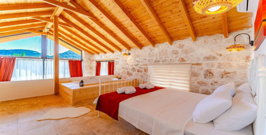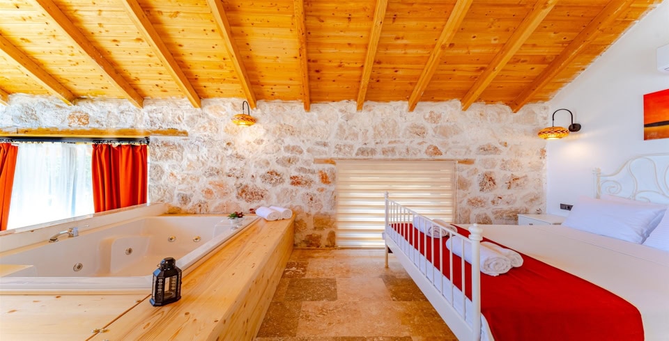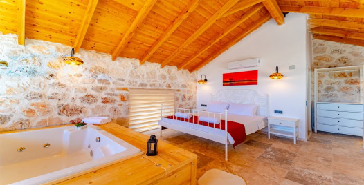 1. Yatak Odası : Çift kişilik yatak, klima, komodin, jakuzi, makyaj masası, banyo ve lavabo bulunmaktadır.