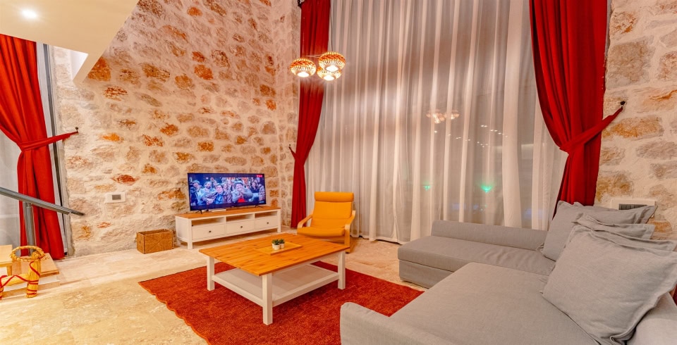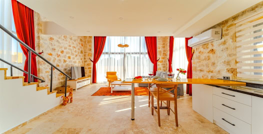 Salon : Villamızın iç dizaynı da son modaya uygun olarak modern bir şekilde tasarlanmıştır. Çeşitli dekoratif eşyalarla süslediğimiz salonumuz havuzlu bahçeye açılıyor. Villa salonunda oturma grubu, TV, internet, klima, sehpa bulunmaktadır.