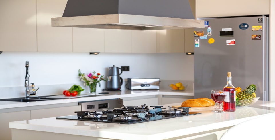 Mutfak: Son teknolojik mutfak aletleri ile dizayn edilmiş modern Amerikan tipi mutfakta yemek masası ve sandalyeler, fırın, mikrodalga kişi sayısı kadar yemek takımı, tost makinesi, tava, çay-su bardakları, tencereler ve çatal bıçak takımları mevcuttur.