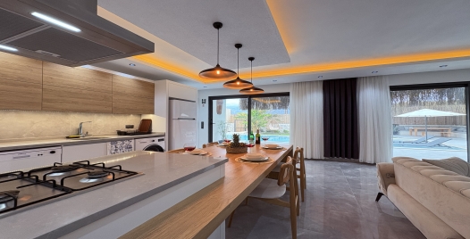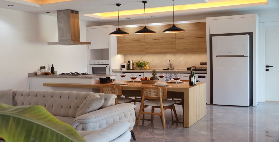 Mutfak: Açık planlı mutfak, 4 kişiye yetecek kadar mutfak malzemeleri, buzdolabı, fırın, ocak, mikrodalga fırın, bulaşık makinesi, çamaşır makinesi, tost makinesi, kettle ve çaydanlık bulunmaktadır..