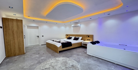 1.Yatak Odası: 1 adet çift kişilik yatak, elbise dolabı, komodin, klima, makyaj masası, jakuzi, banyo ve lavabo bulunmaktadır.