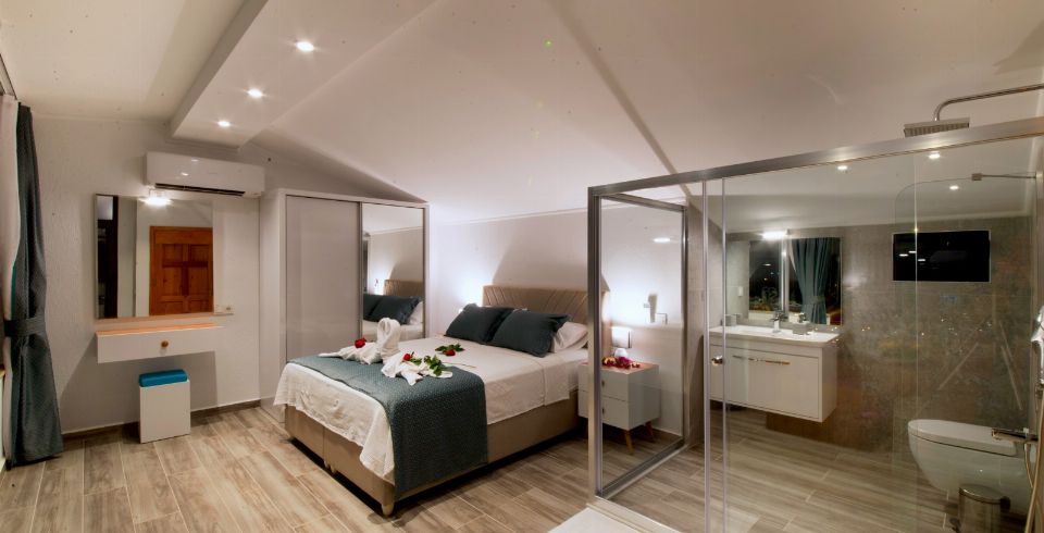 1. Yatak Odası : 1 adet çift kişilik yatak, klima, komodin, elbise dolabı, jakuzi, banyo ve tuvalet bulunmaktadır.