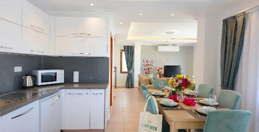 Salon : Salon içerisinde oturma grubu, TV, klima, sehpa bulunmaktadır. Havuz terasına çıkış yapılabilmektedir.