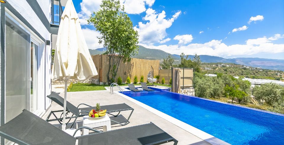 Villamız Kalkan Çavdır bölgesinde yer almaktadır. 2 yatak odasına sahip tatil villamız 4 kişilik konaklama kapasitesine sahiptir. Doğa içinde bir konuma sahip olan tatil villamızın havuz alanı sizlere keyifli bir tatil ortamı sunmaktadır. Balayı çiftleri ve çekirdek aileler için ideal bir seçenek olan muhafazakar hassasiyete sahip misafirlerimiz içinde uygun bir tatil ortamı sunmaktadır.