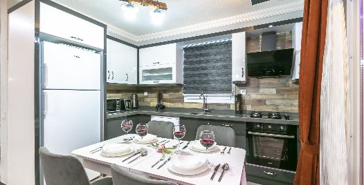 Mutfak: Villamızın mutfağında buzdolabı bulaşık makinası, çamaşır makinası, 4'lü ocak, ketıl, mikro dalga fırın, filtre kahve makinası yemek takımı bulunmaktadır.