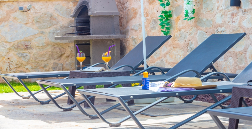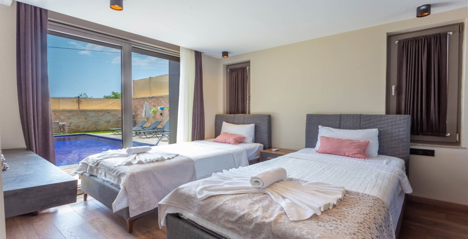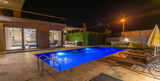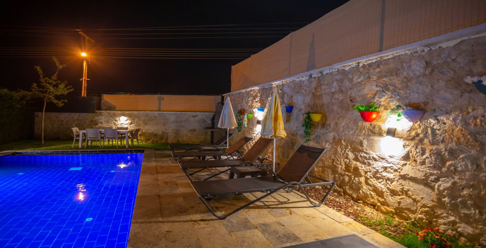 Havuz ve Bahçe : Villamız özel bahçesinde özel yüzme havuzu, güneşlenme terası, şezlong, güneş şemsiyesi, bahçe masası ve sandalyeler, taş barbekü, duş bulunmaktadır. Villa bahçesinde özel havuz bulunmaktadır. Bahçe ve havuz bakım ve temizliği günde 1 kez sabah veya akşam yapılmaktadır.