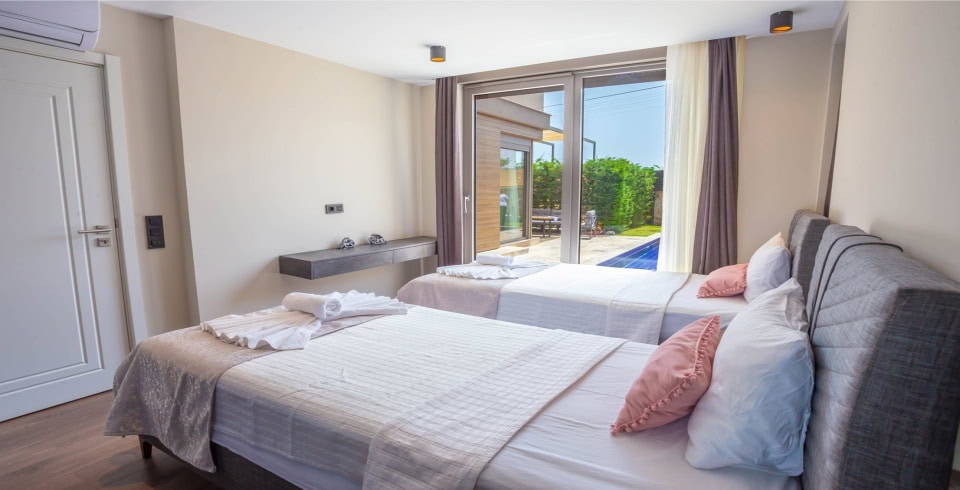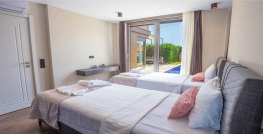 3.Yatak Odası : Klimalı 2 adet tek kişilik yatak bulunmaktadır. Elbise dolabı, komodin, banyo, tuvalet, makyaj masası, kurutma bulunmaktadır.