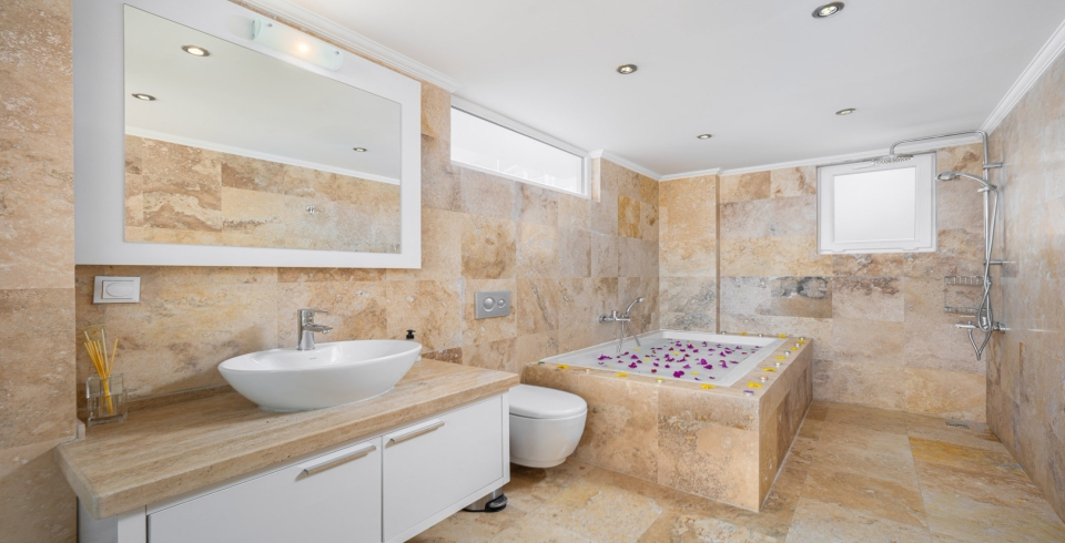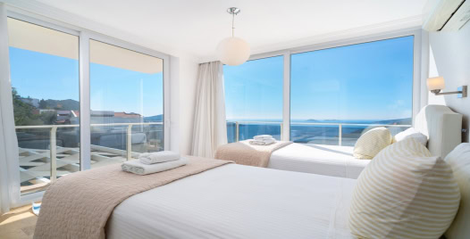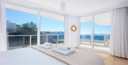 3. Yatak Odası : Klimalı süit yatak odasıdır. Yatak odasında makyaj masası, 1 adet çift kişilik yatak, elbise dolabı, jakuzi, banyo ve tuvalet bulunmaktadır. Deniz manzaralı balkon vardır ve balkonda oturma grubu yer almaktadır.
