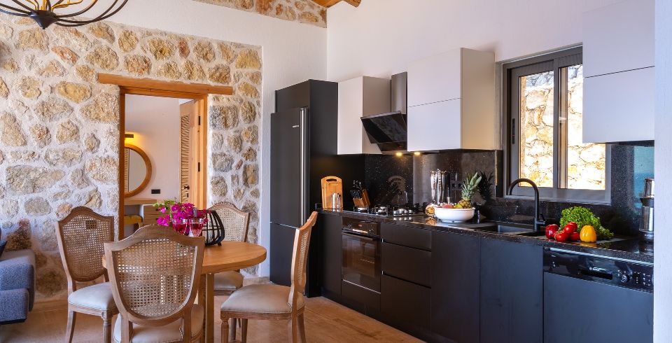 Mutfak : Modern Amerikan mutfak içerisinde buzdolabı, bulaşık makinası, fırın, ocak, mikrodalga fırın, tost makinası, yemek masası, yemek takımları, çatal ve bıçak takımları, tencere ve tava takımları, bardaklar bulunmaktadır.