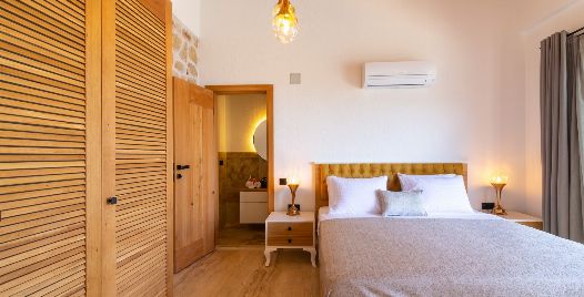 1. Yatak Odası : 1 adet çift kişilik yatak, klima, komodin, elbise dolabı, makyaj masası, yüzme havuzu, banyo ve tuvalet bulunmaktadır.