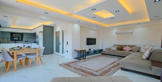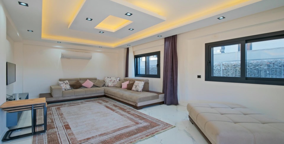 Salon: Oturma grubu, klima, orta sehpa, TV ünitesi ve TV, bulunmaktadır. Havuz terasına çıkış bulunmaktadır.