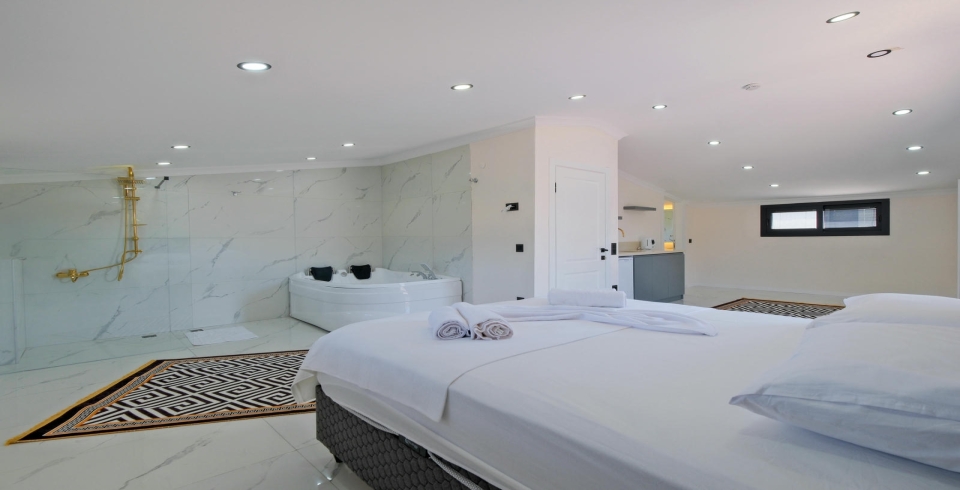 Villanın özel yüzme havuzu, gün boyu serinlemeniz için mükemmel bir ortam sunarken, jakuzisi ise tatilinize ekstra bir rahatlık katıyor. Sessiz ve dingin atmosferi sayesinde doğayla baş başa kalabilir, rahatlatıcı bir tatilin tadını çıkarabilirsiniz.