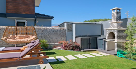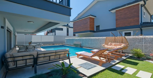 Havuz ve Bahçe: Özel yüzme havuzu, şezlong şemsiye, yemek masası, sandalyeler, barbekü (mangal), bahçe oturma grubu bulunmaktadır.