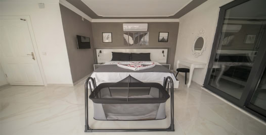 1. Yatak Odası : Çift kişilik yatak, klima, komodin, jakuzi, makyaj masası, banyo ve lavabo bulunmaktadır.