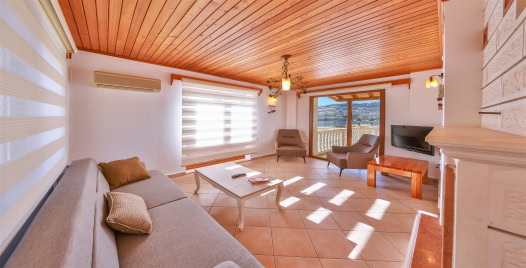 Salon: Salonumuzda klima,oturma grubu,televizyon,sehpa bulunmaktadır.Havuz terasına çıkış yapılabilmektedir.