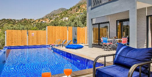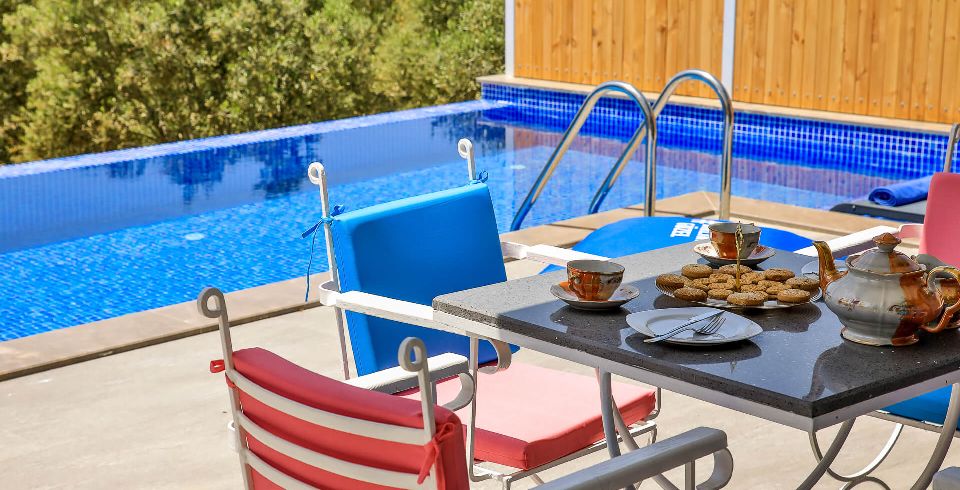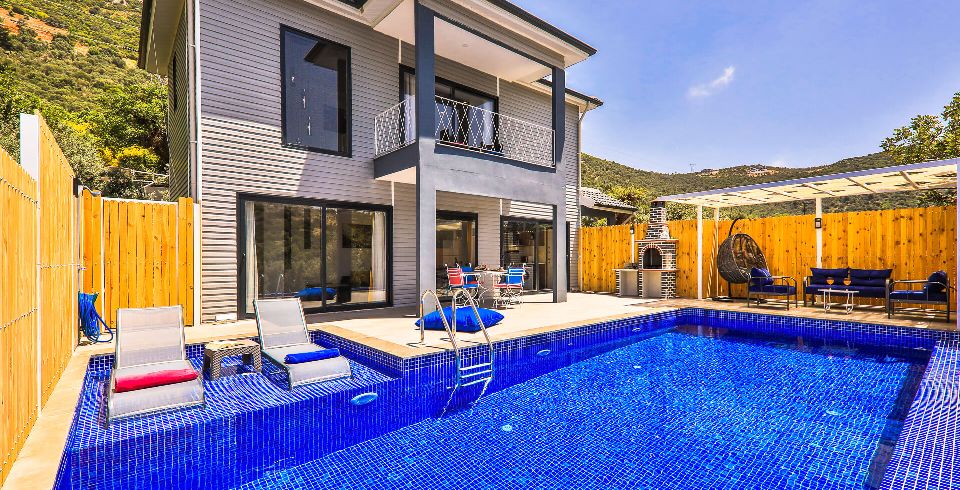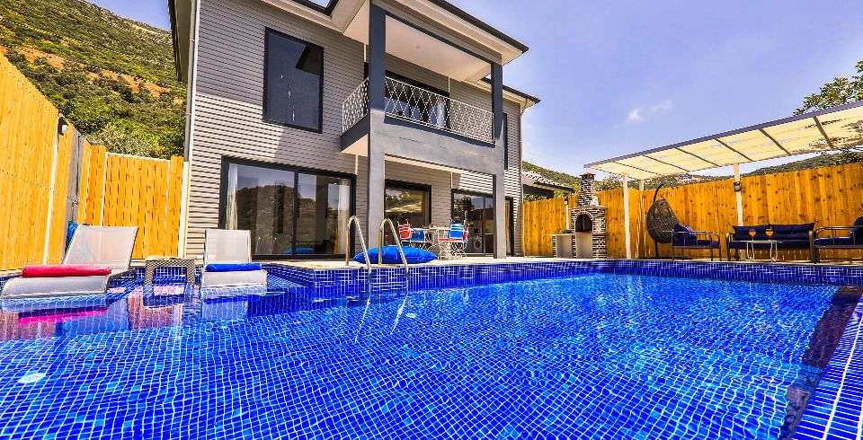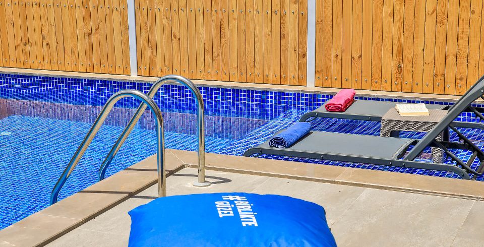 Havuz ve Bahçe : Özel yüzme Havuzu korunaklı olup dışarıdan gözükmemektedir. Bahçe içerisinde şezlonglar, güneş şemsiyeleri, masa ve sandalyeler, barbekü bulunmaktadır.