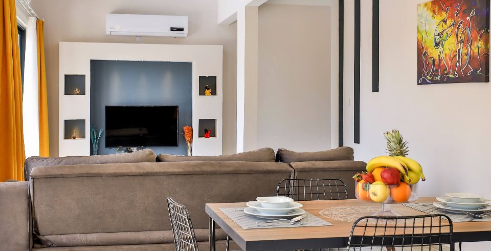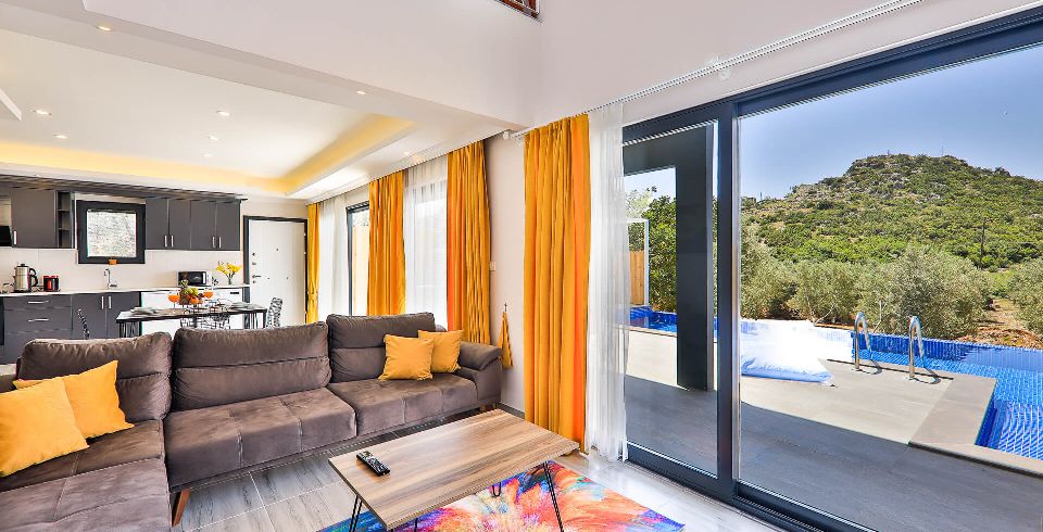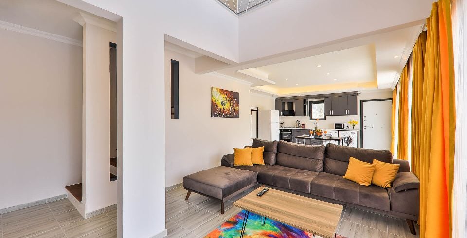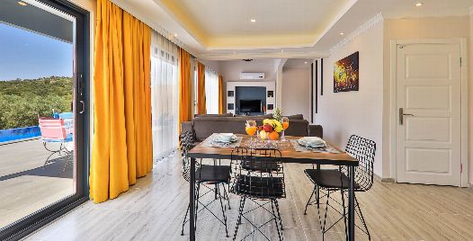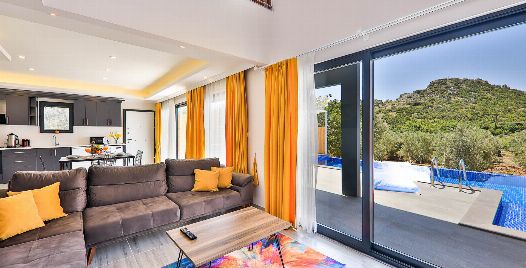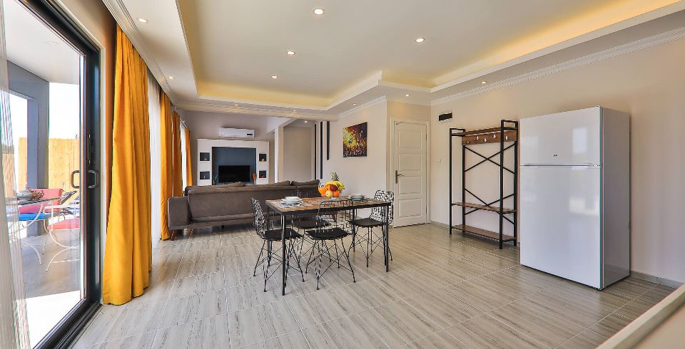 Salon : Salonumuzda oturma grubu, uydu alıcı, TV, klima, ütü ve ütü masası, elektrik süpürgesi, havuza çıkış bulunmaktadır.
