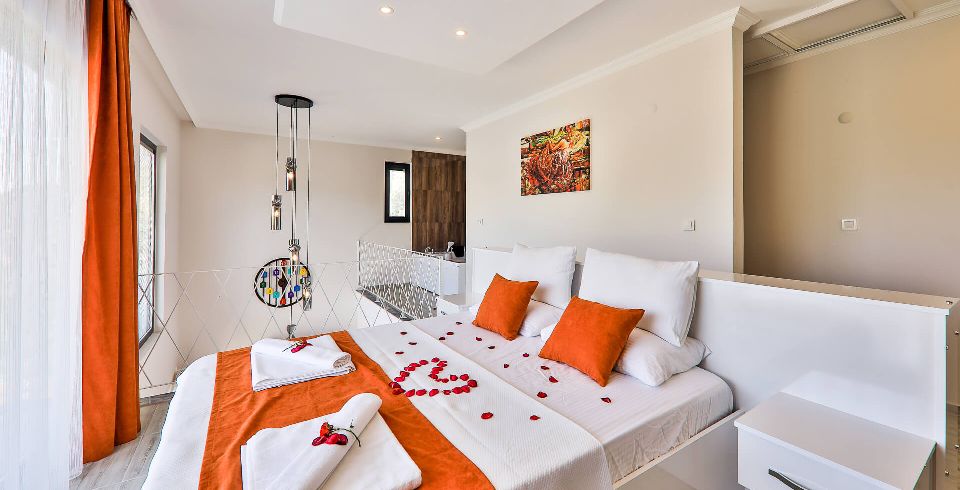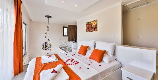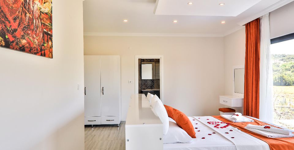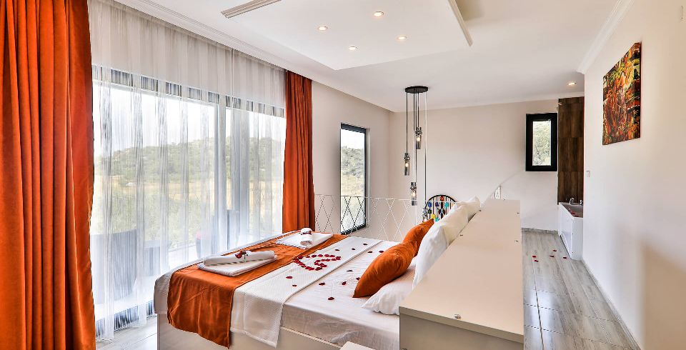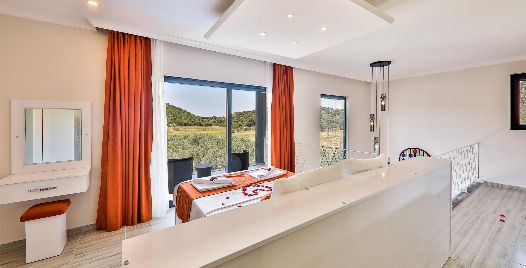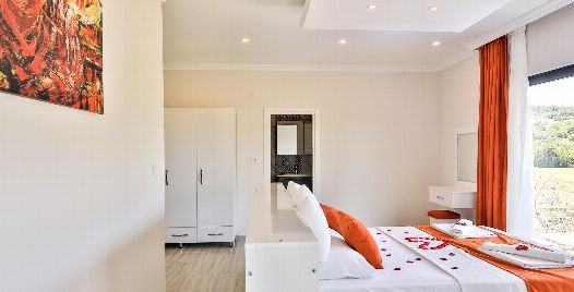 1. Yatak Odası : En suit,1 adet çift kişilik yatak, komodin. klima, banyo ve jakuzi bulunmaktadır.