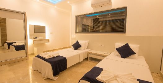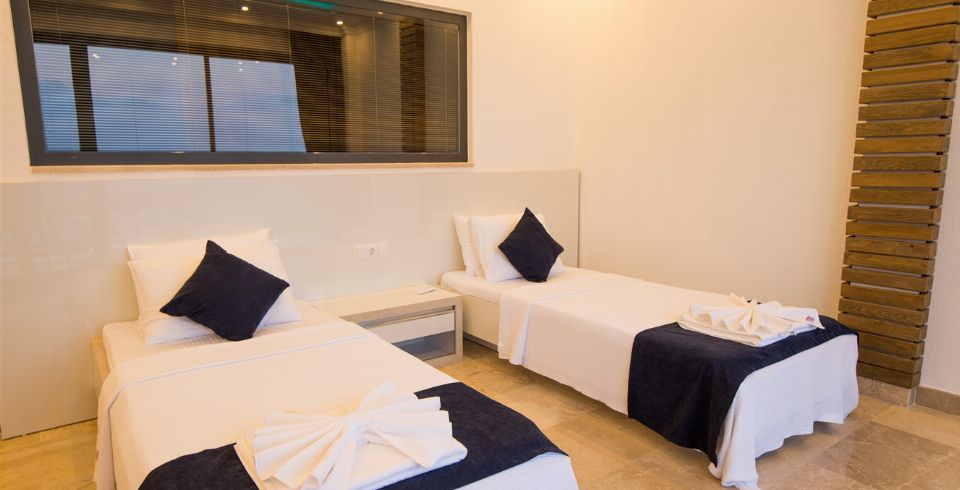 2. Yatak Odası : Süit genç yatak odasıdır. 2 adet tek kişilik yatak, elbise dolabı, makyaj masası, komodin, saç kurutma makinası, klima, banyo ve tuvalet bulunmaktadır.