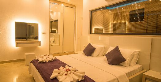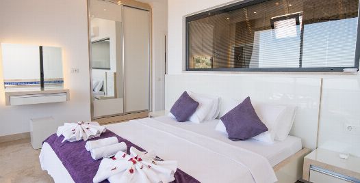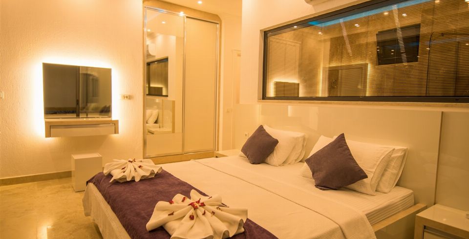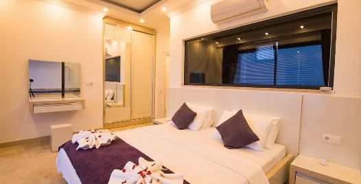 1. Yatak Odası : Süit yatak odasıdır. 1 adet çift kişilik yatak, elbise dolabı, makyaj masası, komodin, saç kurutma makinası, klima, jakuzi, kapalı havuz, banyo ve tuvalet bulunmaktadır.