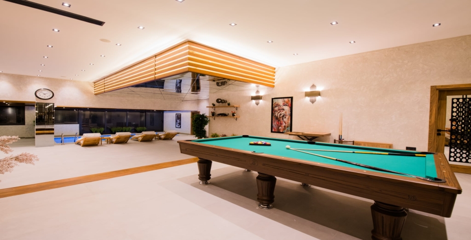 Lobi Alanı: Kapalı ısıtmalı havuz, bilardo masası, mini bar, tuvalet ve banyo bulunmaktadır.