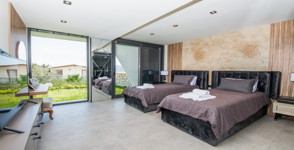 4. Yatak Odası : 2 adet tek kişilik yatak, klima, komodin, elbise dolabı, makyaj masası, TV, banyo ve tuvalet bulunmaktadır. Zemin katta bulunmaktadır.