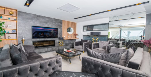 Salon : Salon içerisinde oturma grubu, TV, klima, sehpa, yemek masası, internet bulunmaktadır. Havuz terasına çıkış yapılabilmektedir.