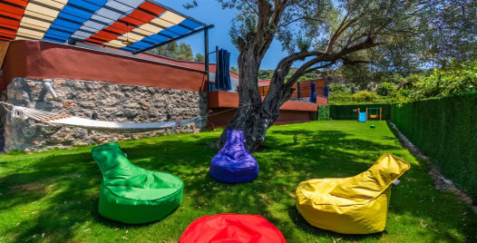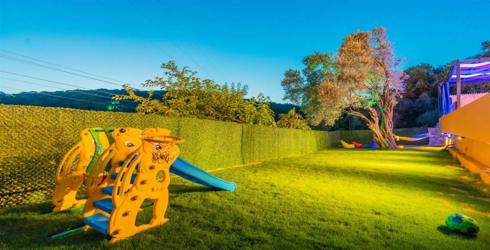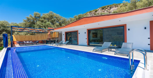 Havuz ve Bahçe : . Villamızın havuz terasında şezlong, oturma grubu, barbekü, özel yüzme havuzu, masa tenisi, çocuk oyun alanı, hamak bulunmaktadır.