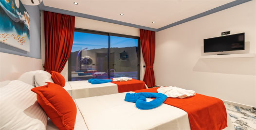 1. Yatak Odası : Çift kişilik yatak, klima, komodin, jakuzi, makyaj masası, banyo ve lavabo bulunmaktadır.