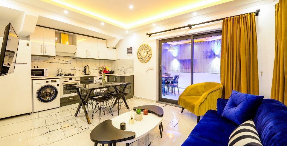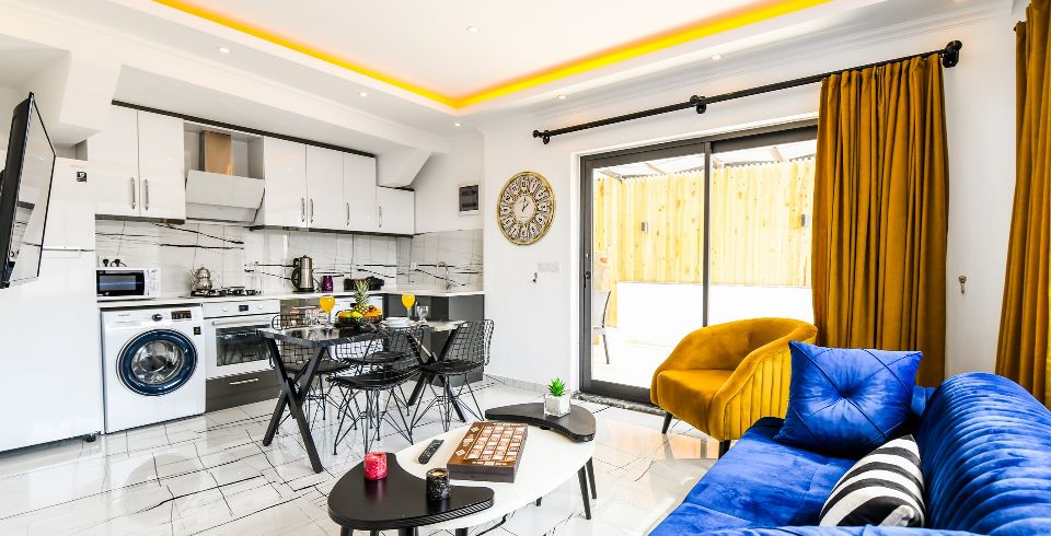 Mutfak : Villamızın Amerikan mutfağı ile sizlere kendi evinizin mutfağı gibi hissettirecek. Ayrıca mutfakta klima, bulaşık makinası, buzdolabı, çamaşır makinası, mikrodalga fırın, tost makinası, ekmek kızartma, su ısıtıcısı, fırın, 4`lü ocak seti ve yemek masası ile tava tencere vb. mutfak araç gereçlerini kullanma fırsatını sizlere sunuyoruz.
