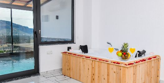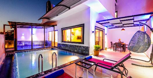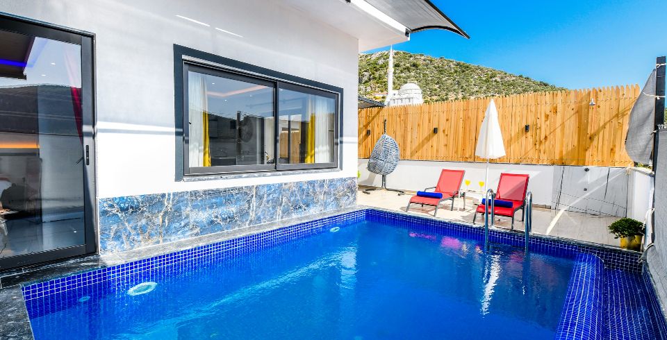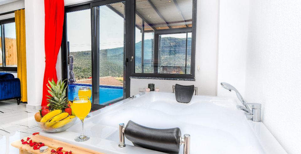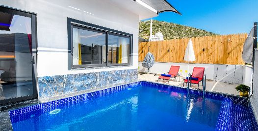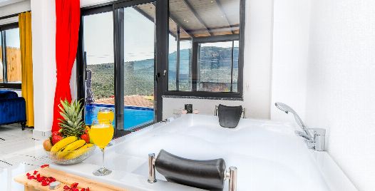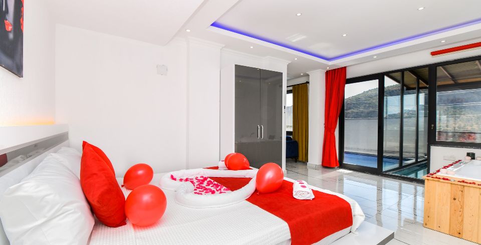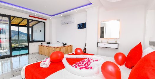 Kalkan Ulugöl mevkisin de bulunan kiralık villamız Villa Yaz 4 Balayı çiftleri için özel olarak tasarlanmıştır. Tek yatak odalı ve 2 kişi kapasiteli kiralık villamızın yatak odasında jakuzisi bulunmaktadır. Doğa manzarasına sahip olan villamızın özel havuz terası korunaklıdır. Muhafazakar çiftlerin gönül rahatlığı ile tercih edebileceği villamız şık ve renkli bir tasarıma sahiptir. Çiftlerimize kış aylarında da tatil imkanı sunan villamızda kapalı ısıtmalı havuz bulunmaktadır.