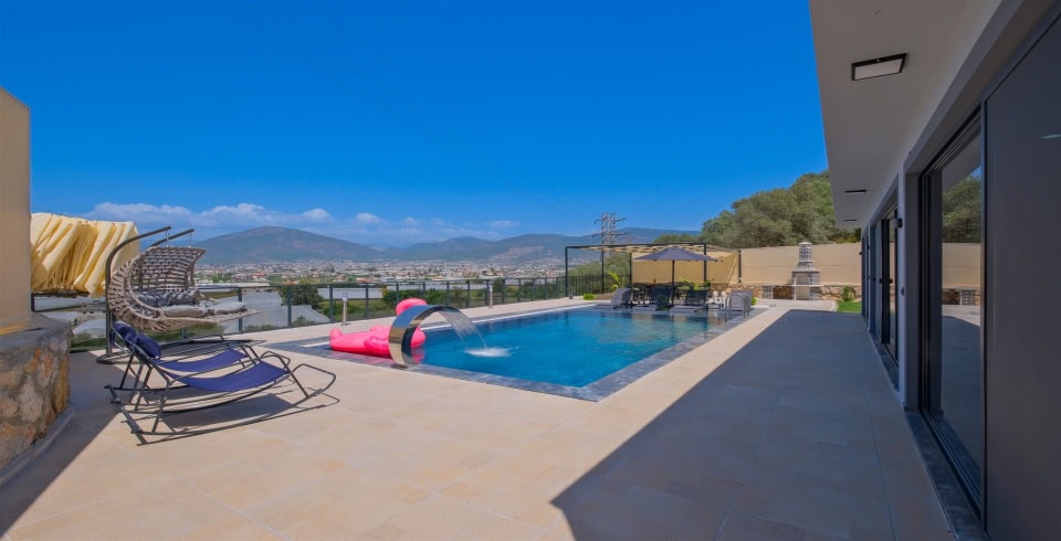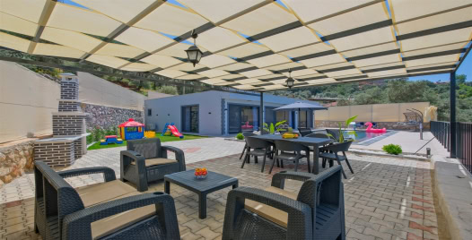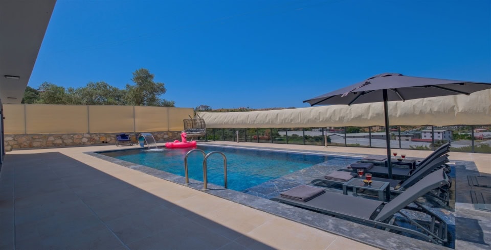 Havuz ve Bahçe: Havuz ve bahçesi korunaklı olup dışarıdan gözükmemektedir. Özel yüzme havuzu, şezlong, şemsiye, salıncak, çocuk oyun parkı yemek masası ve barbekü bulunmaktadır.