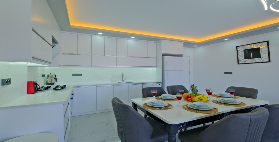 Mutfak: Villamızın mutfağında buzdolabı bulaşık makinası, çamaşır makinası, 4'lü ocak, ketıl, mikrodalga fırın, filtre kahve makinası, yemek takımı bulunmaktadır.