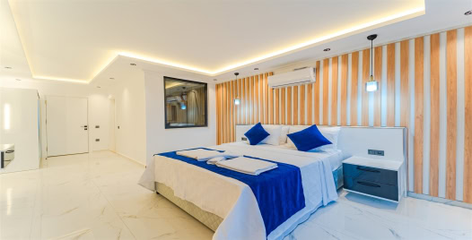 4. Yatak Odası : 2 adet kişilik yatak, klima, komodin, makyaj masası, elbise dolabı, banyo ve lavabo bulunmaktadır.