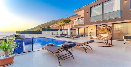 VillaYeşim, Kalkan Ordu bölgesinde yer alan 5 yatak odalı 10 kişi konaklama kapasitesine sahip olan deniz manzaralı lüks villamızdır. Villa Yeşim in içerisinde Bilardo masası bulunmakta olup 1. yatak odasında jakuzibi bulunmaktadır. Şık tasarıma sahip amerikan tip mutfağımızda temel mutfak araç gereçleri yer almaktadır. Oturma alanından havuz terasına geçiş bulunmaktadır, geniş havuz alanında keyifli vakitler geçirebilir aileniz ve arkadalarınız ile barbekü alanında mangal keyfi yapabilirsiniz.