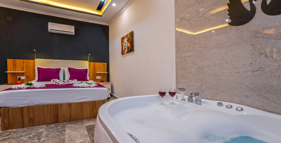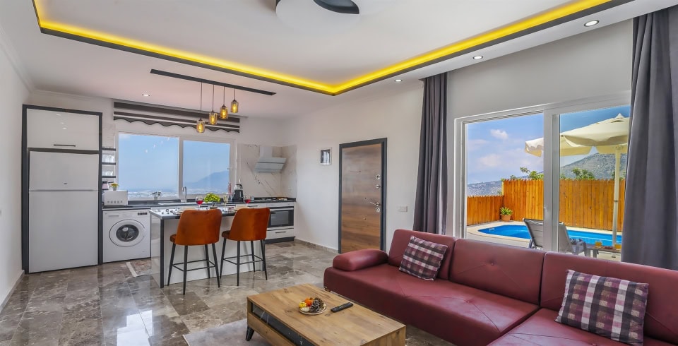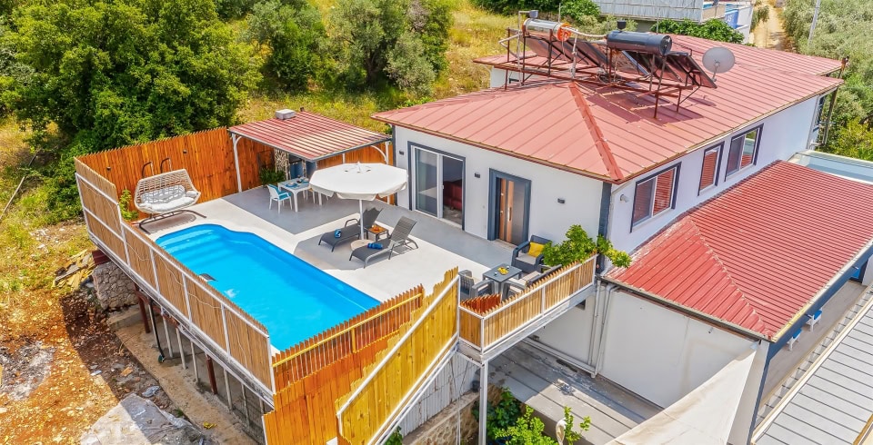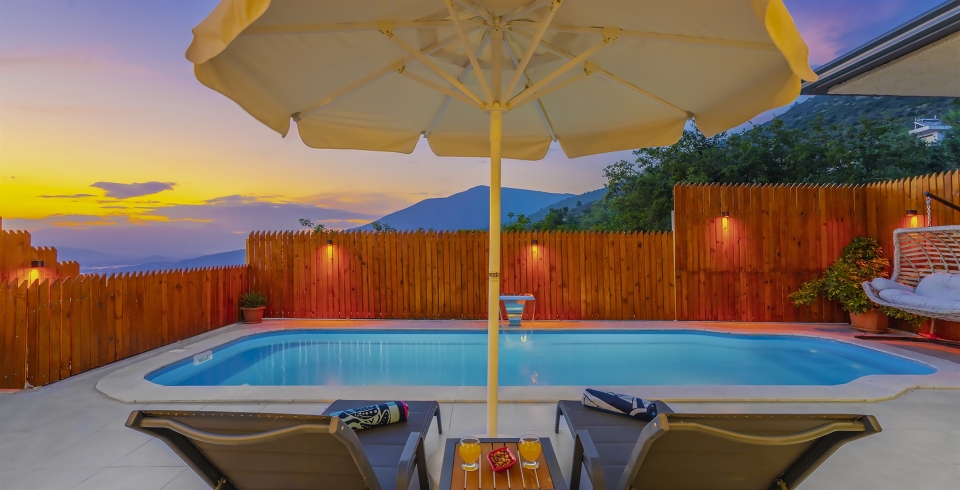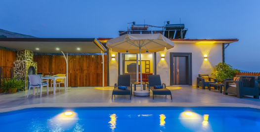 Kalkan’ın huzur dolu Üzümlü bölgesinde yer alan Villa Yiğit Üzümlü, doğanın içinde romantik ve konforlu bir tatil sunan özel bir balayı villası. 1 yatak odası ve 2 kişilik kapasitesi, şık ve modern tasarımıyla çiftler için unutulmaz bir kaçış noktası sağlıyor. Jakuzisi ve saunası, günün yorgunluğunu atarken rahatlamanızı sağlarken, villa doğayla iç içe sakin bir atmosfer sunuyor.