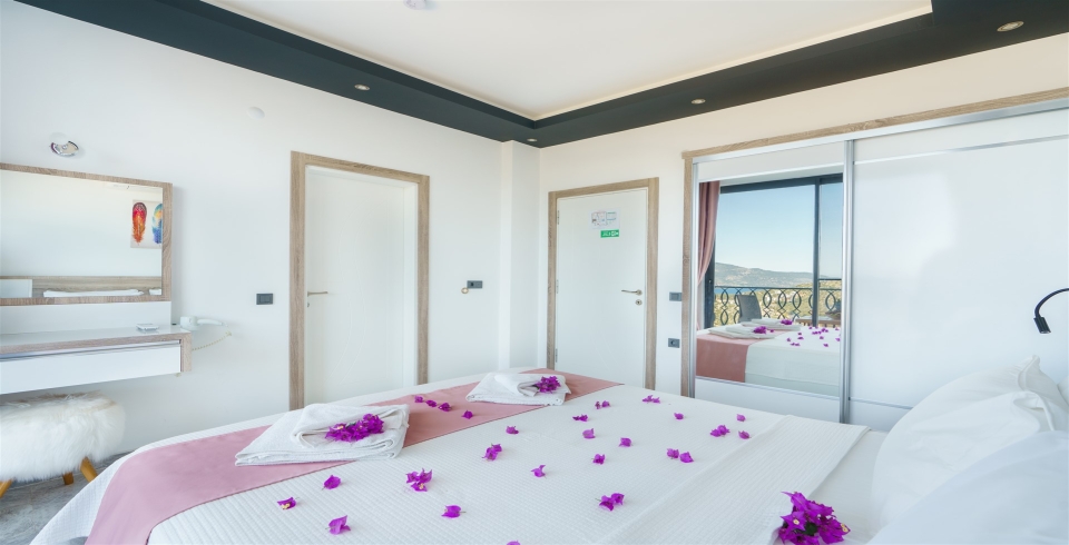 3. Yatak Odası : 2 adet tek kişilik konfor yatak, , klima, komodin, makyaj masası, banyo-WC ve havuz terasına çıkış yer almaktadır.