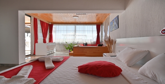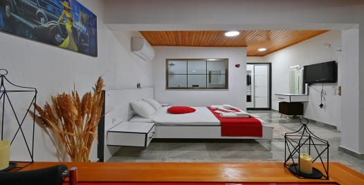 1.Yatak Odası: 1 adet çift kişilik yatak, elbise dolabı, komodin, klima, makyaj masası, TV, jakuzi, banyo ve lavabo bulunmaktadır.